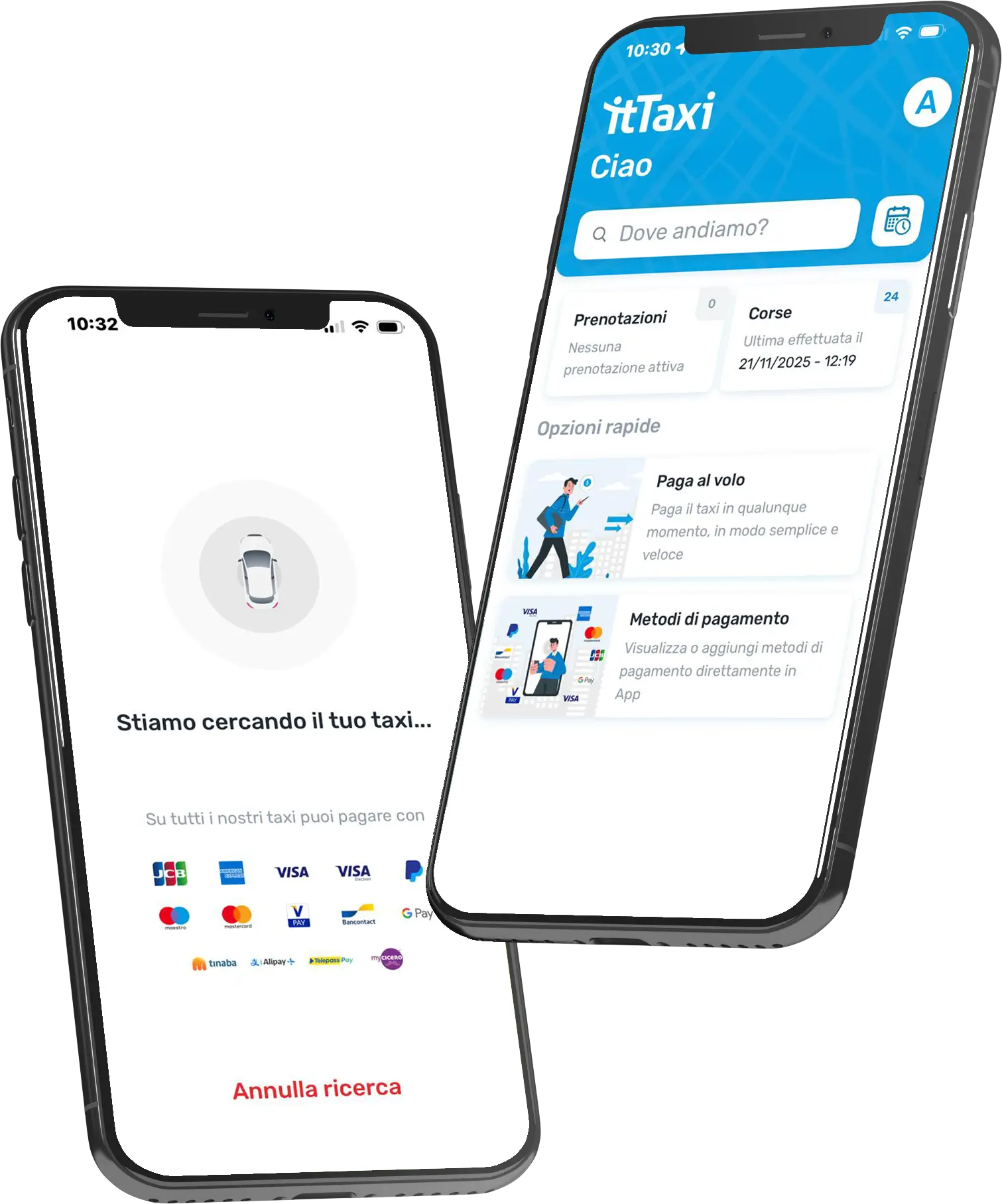 itTaxi Business subscribers can use the service to pay for taxis in all participating cities in Italy.